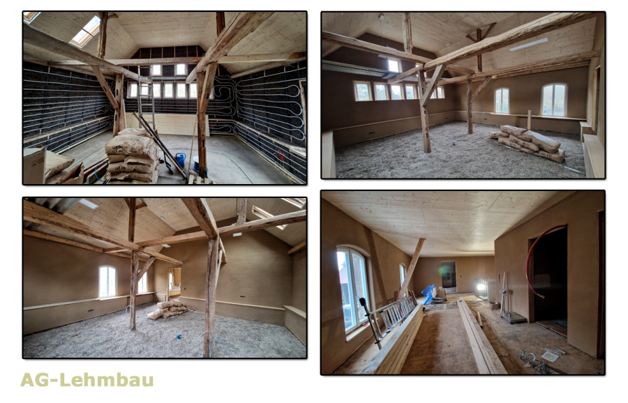 Ein Projekt mit Hilfe der Bewohner-Innen. Bei einer Komplettsanierung wurden über 700 m² Flächen an Decken und Wänden mit Lehm verputzt. Nach den Vor- und Dämmarbeiten wurden sämtliche Außenwände mit Wandheizungen versehen. Alle Laibungen hatten Bögen und bekamen Rundungen.