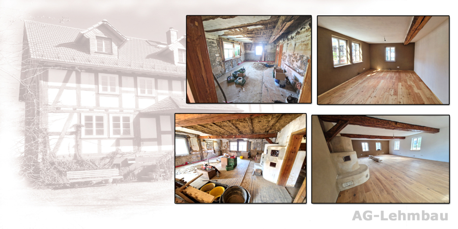 Nach einer kompletten Entkernung und Trocknung wurden die insgesamt 750 m² Decken- und Wandflächen, zum Teil unter Benutzung des Altlehmes, neu aufgebaut.